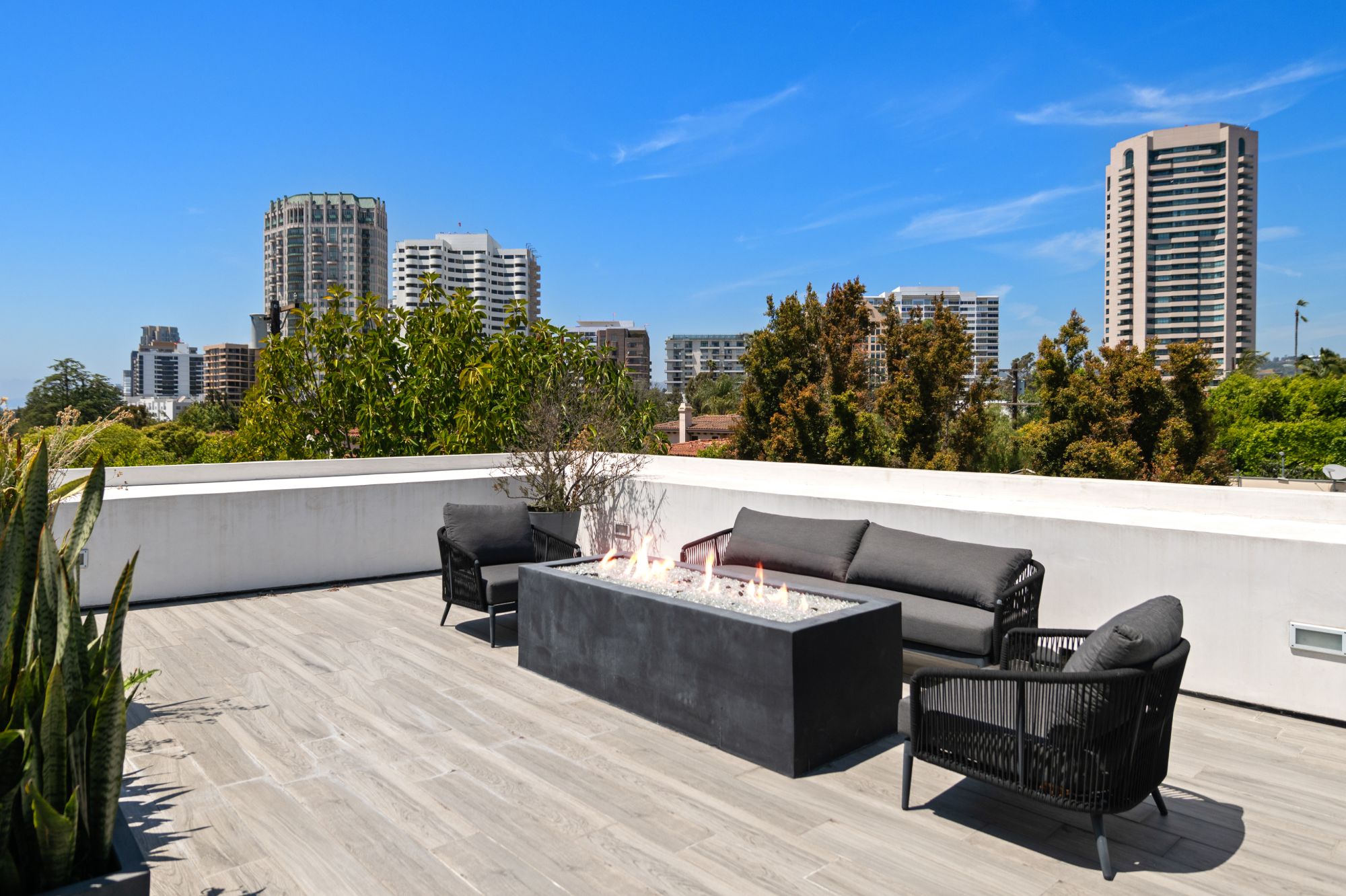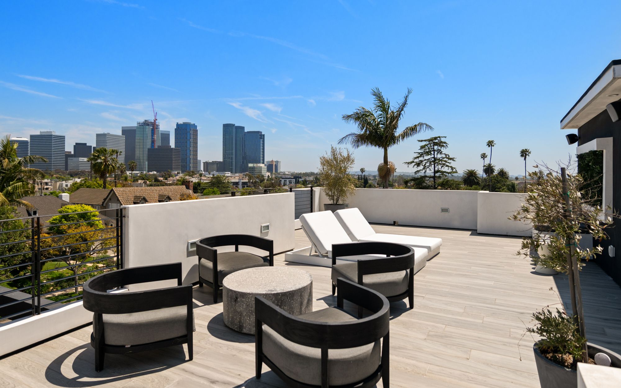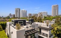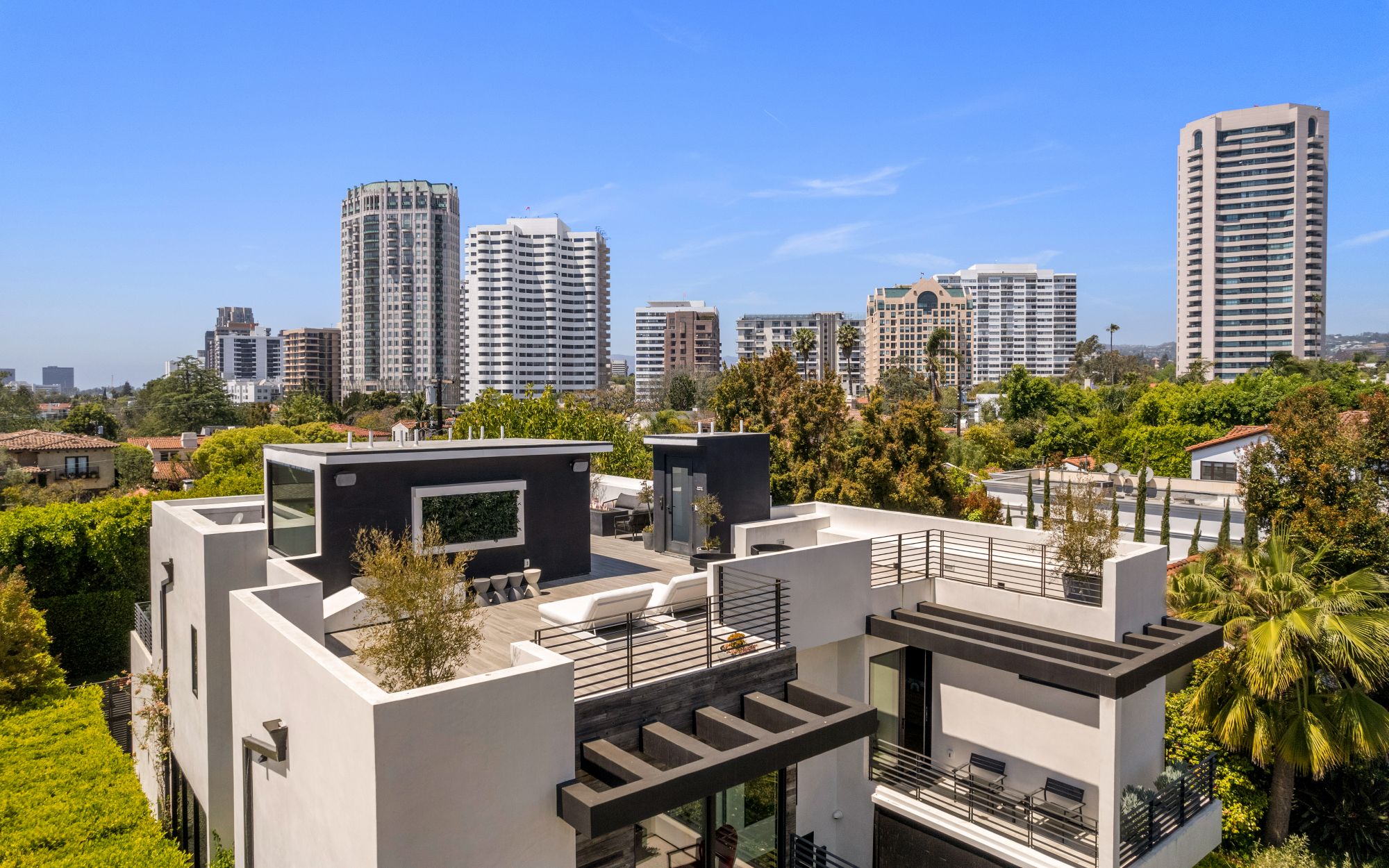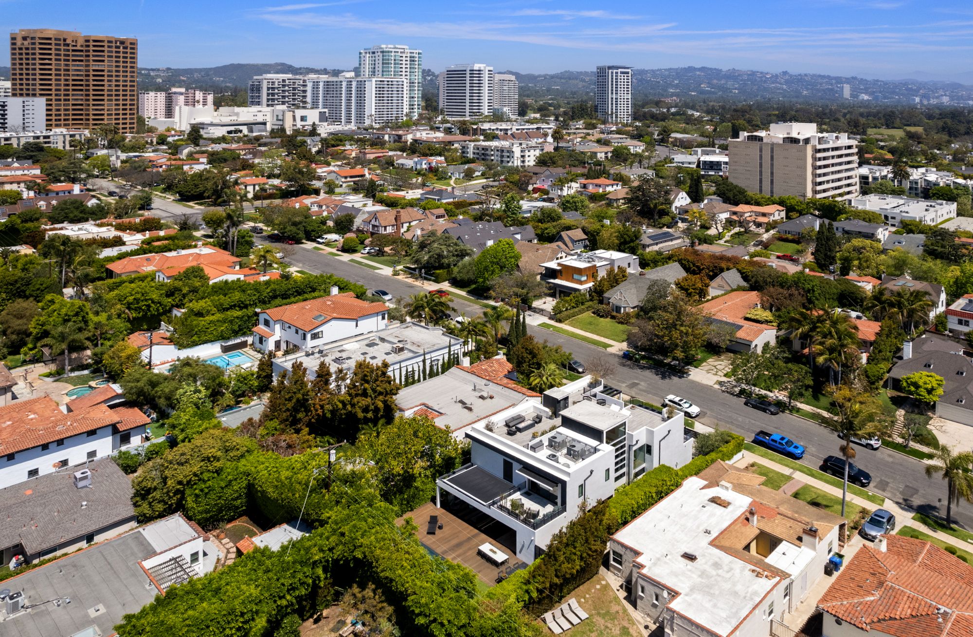 Step into your gated, organic-modern sanctuary on one of Westwood's most coveted streets, where luxury, design, and serenity come together in perfect harmony. With 5,500 square feet of meticulously designed living space on a generous 7,300 square foot lot, this 5-bedroom, 6-bathroom residence exemplifies the pinnacle of sophisticated living. This architectural masterpiece is crafted with exquisite attention to detail, offering warm modern finishes and thoughtful functionality at every turn. Surrounded by lush, mature greenery, the home feels like a private retreat. Soaring ceilings and the expansive open-floor plan seamlessly connect the four levels of ultimate living space, creating an ideal flow for both intimate living and grand-scale entertaining. The home features a state-of-the-art elevator, movie theater, a fully equipped private gym with sauna. A resort-style pool and spa, and a show-stopping rooftop deck with panoramic views that sweep from the glittering skyline of Downtown Los Angeles to the iconic runways of LAX and the Wilshire Corridor. On the main floor, natural light floods through floor-to-ceiling windows, the chef's kitchen with premium appliances, custom cabinetry, and an oversized island perfect for gatherings. Every bedroom is a tranquil escape, with spa-inspired bathrooms and ample closet space, including a luxurious primary suite designed for ultimate comfort and style. This is more than just a home it's a lifestyle statement. A rare opportunity to live in an architectural gem that offers privacy, prestige, and the best of Los Angeles living. Time to step it up and live the ultimate California dream.
