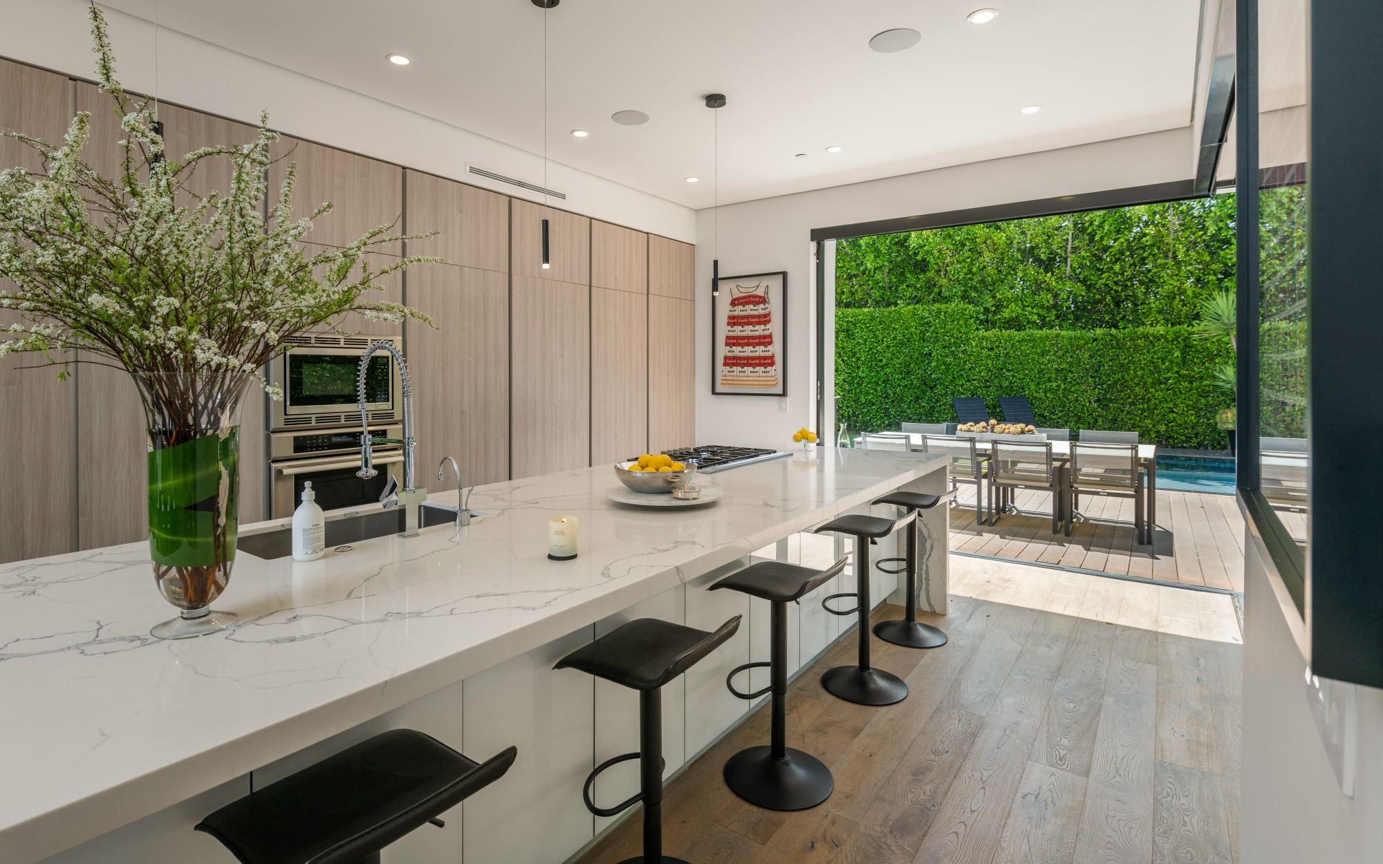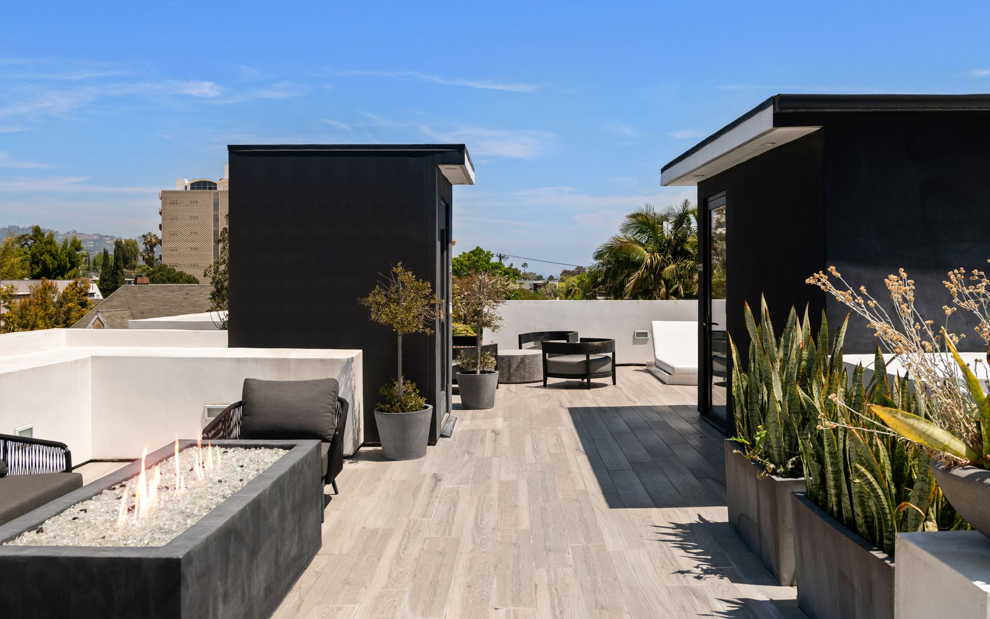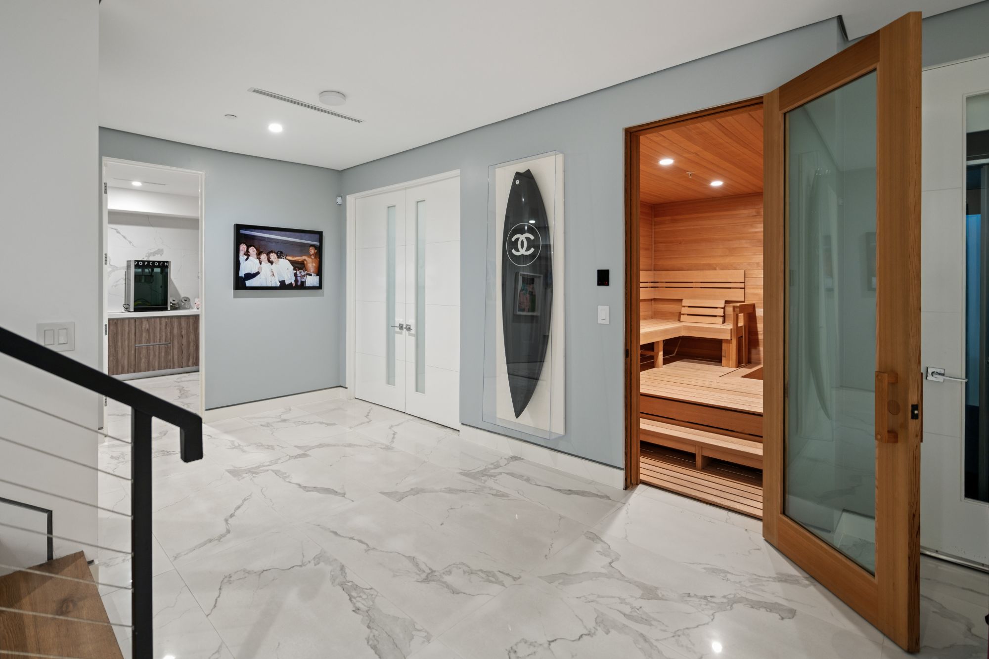 Step into your gated, organic-modern sanctuary on one of Westwood's most coveted streets, where luxury, design, and serenity come together in perfect harmony. With 5,500 square feet of meticulously designed living space on a generous 7,300 square foot lot, this 5-bedroom, 6-bathroom residence exemplifies the pinnacle of sophisticated living. This architectural masterpiece is crafted with exquisite attention to detail, offering warm modern finishes and thoughtful functionality at every turn. Surrounded by lush, mature greenery, the home feels like a private retreat. Soaring ceilings and the expansive open-floor plan seamlessly connect the four levels of ultimate living space, creating an ideal flow for both intimate living and grand-scale entertaining. The home features a state-of-the-art elevator, movie theater, a fully equipped private gym with sauna. A resort-style pool and spa, and a show-stopping rooftop deck with panoramic views that sweep from the glittering skyline of Downtown Los Angeles to the iconic runways of LAX and the Wilshire Corridor. On the main floor, natural light floods through floor-to-ceiling windows, the chef's kitchen with premium appliances, custom cabinetry, and an oversized island perfect for gatherings. Every bedroom is a tranquil escape, with spa-inspired bathrooms and ample closet space, including a luxurious primary suite designed for ultimate comfort and style. This is more than just a home it's a lifestyle statement. A rare opportunity to live in an architectural gem that offers privacy, prestige, and the best of Los Angeles living. Time to step it up and live the ultimate California dream.