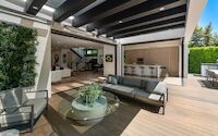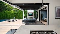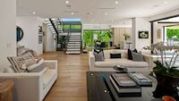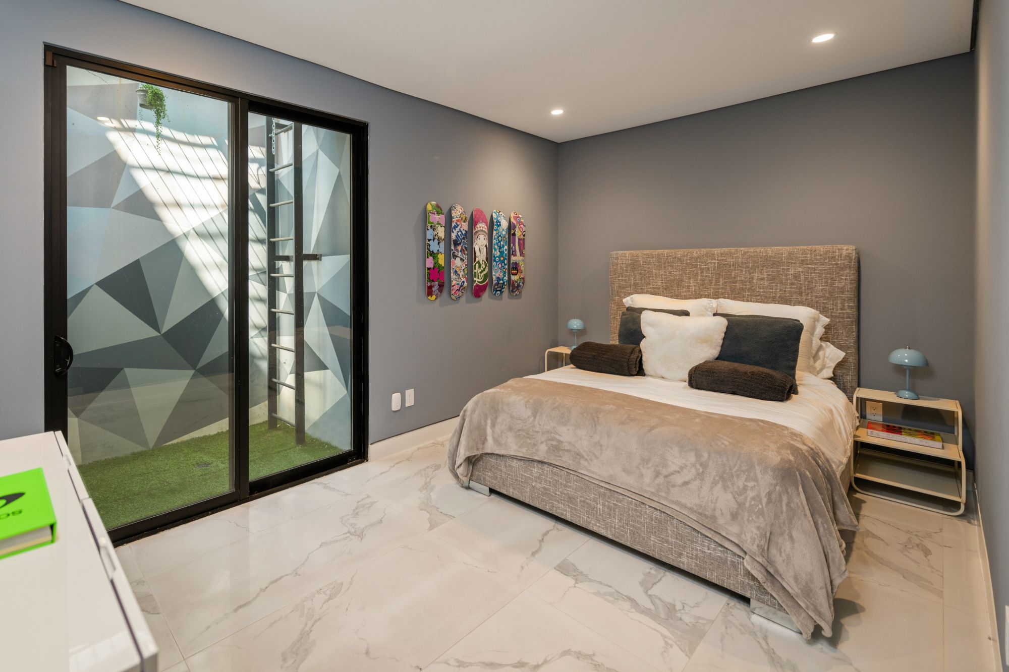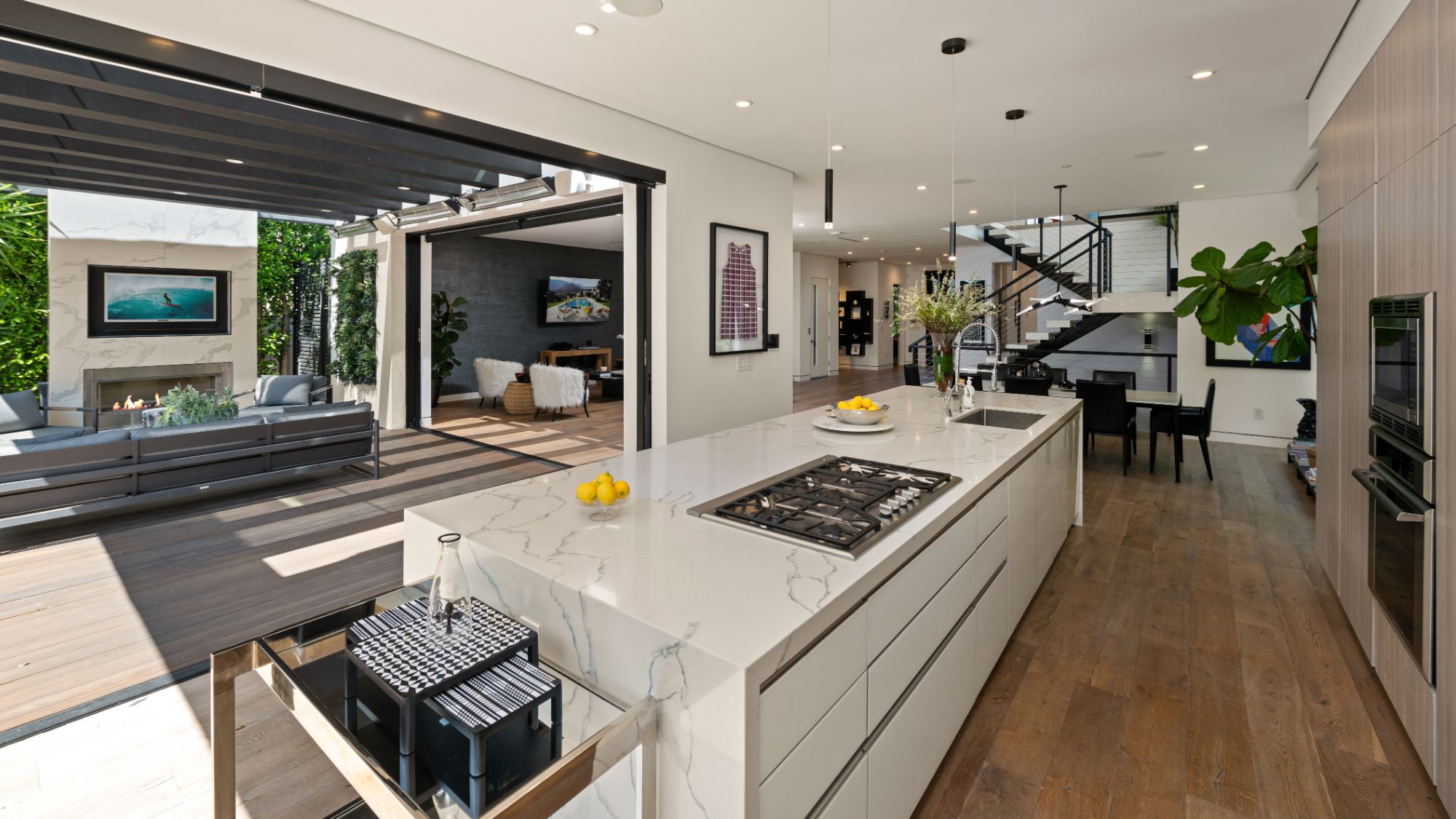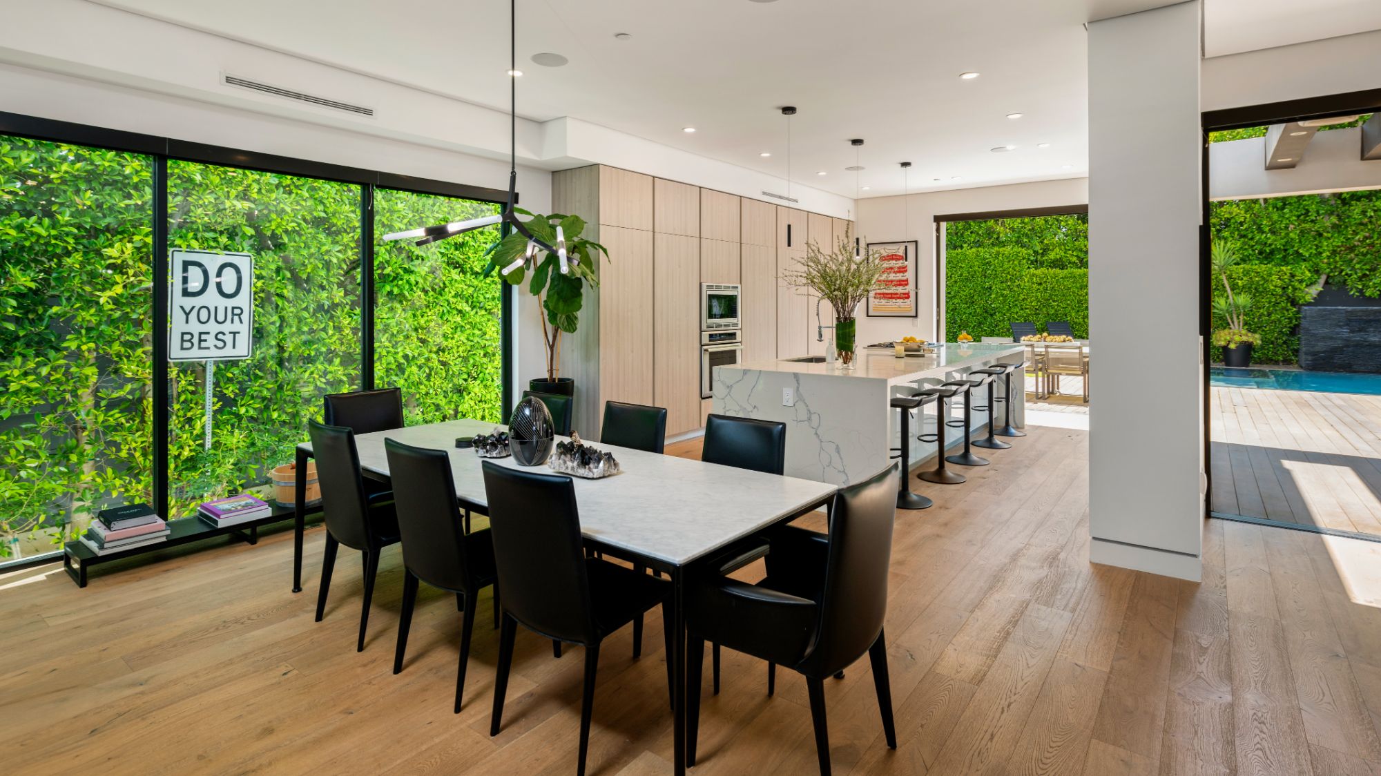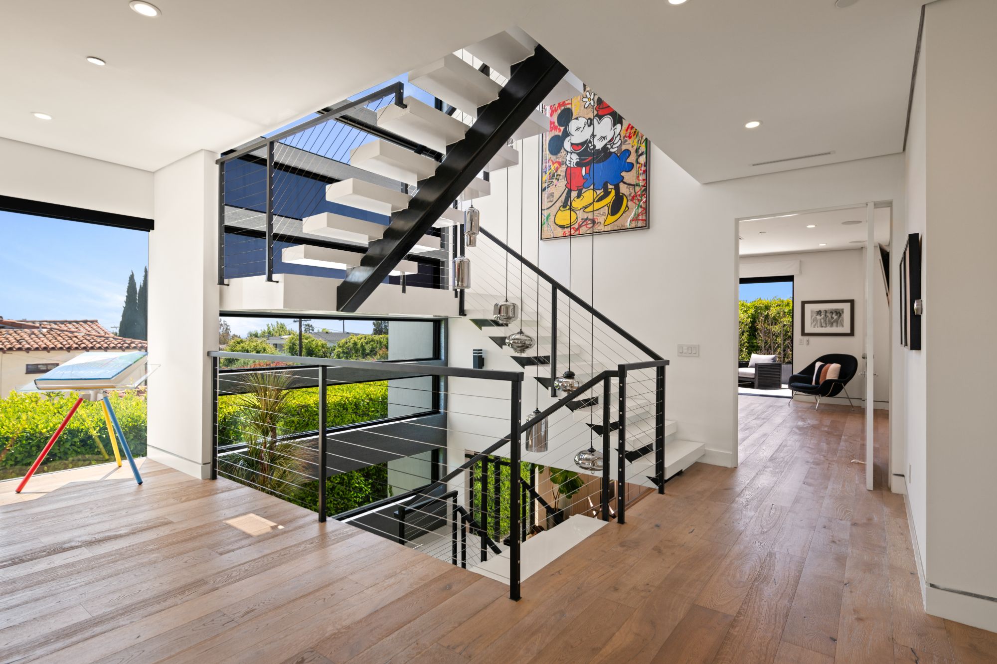 Step into your gated, organic-modern sanctuary on one of Westwood's most coveted streets, where luxury, design, and serenity come together in perfect harmony. With 5,500 square feet of meticulously designed living space on a generous 7,300 square foot lot, this 5-bedroom, 6-bathroom residence exemplifies the pinnacle of sophisticated living. This architectural masterpiece is crafted with exquisite attention to detail, offering warm modern finishes and thoughtful functionality at every turn. Surrounded by lush, mature greenery, the home feels like a private retreat. Soaring ceilings and the expansive open-floor plan seamlessly connect the four levels of ultimate living space, creating an ideal flow for both intimate living and grand-scale entertaining. The home features a state-of-the-art elevator, movie theater, a fully equipped private gym with sauna. A resort-style pool and spa, and a show-stopping rooftop deck with panoramic views that sweep from the glittering skyline of Downtown Los Angeles to the iconic runways of LAX and the Wilshire Corridor. On the main floor, natural light floods through floor-to-ceiling windows, the chef's kitchen with premium appliances, custom cabinetry, and an oversized island perfect for gatherings. Every bedroom is a tranquil escape, with spa-inspired bathrooms and ample closet space, including a luxurious primary suite designed for ultimate comfort and style. This is more than just a home it's a lifestyle statement. A rare opportunity to live in an architectural gem that offers privacy, prestige, and the best of Los Angeles living. Time to step it up and live the ultimate California dream.
